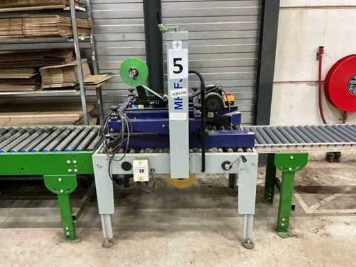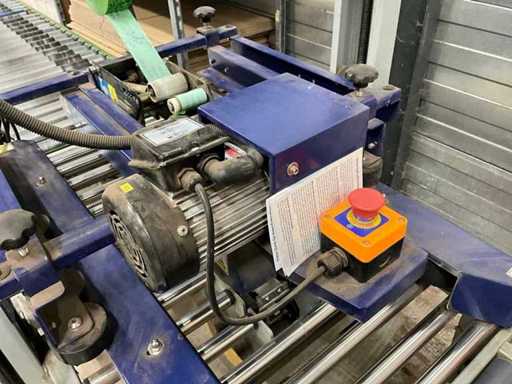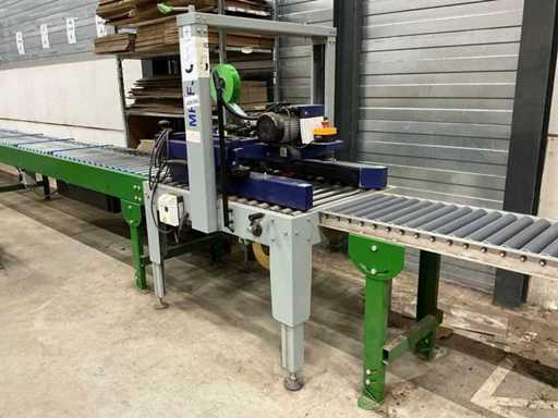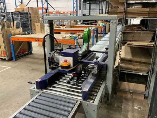 Le haut et le bas des boîtes ; Taille de la boîte : Largeur : 120 - 480 mm et hauteur : 120 - 480 mm ; 600W ; équipé d’un convoyeur à rouleaux H74xW45xL150cm