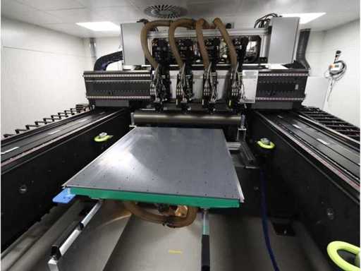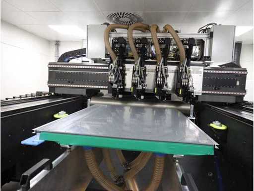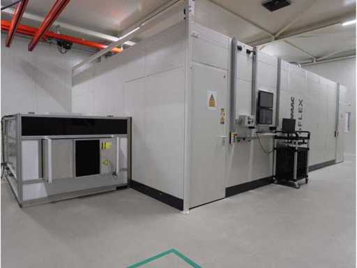Roll-to-roll, avec une base en granit construite dans un enclos isolé, composée de : 4x expanseur de teste/faisceau de processeur laser, 4x caméra d’alignement « Basler ace », 1x table de durcissement UV type drylin® ZLW-1660 « Igus », 1x chambre de durcissement (S) de durcissement (1x chambre de durcissement de durcition), 2x unité d’enroulement/déroulement « Krogel » (2022), 1x unité d’extraction de poussière « Keller » type L-CUT-2-PM6-m6-BE58, (2022), surface au sol utilisée d’environ 12,000x7000mm, poids total d’environ 22,000 kg