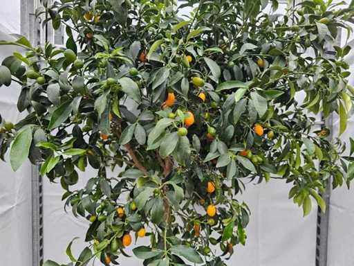 Ce magnifique arbre kumquat est un véritable point fort pour tout amoureux des plantes. Avec une hauteur impressionnante d’environ 180 cm et une couronne luxuriante et fruitière, elle apporte immédiatement une touche du sud à votre espace extérieur ou à votre serre. Les petits fruits ovales brillent d’un orange vif et forment un magnifique contraste avec le feuillage vert profond et brillant. Un spécimen particulièrement robuste qui, selon l’étiquette, peut même résister à des températures à court terme jusqu’à -5°C.
