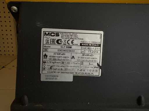 Chauffage à gaz avec puissance réglable de 36 à 53 kW.