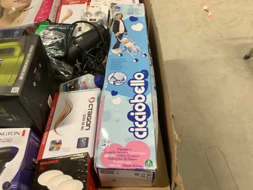 Cela concerne un lot de produits retournés provenant d’un grand détaillant en ligne. Les produits se composent de différentes catégories de produits. Non contrôlé : opération inconnue (mélange de fonctionnel, incomplet, endommagé, utilisable pour les parties). Venez le jour de la séance pour bien comprendre la raison du retour.