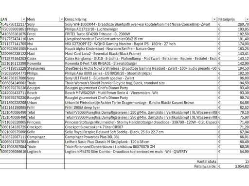 Il s’agit d’un lot de produits retournés de la marque A provenant d’un grand détaillant en ligne. Le lot se compose de différentes catégories de produits. Nombre de pièces : 27. Valeur de détail : 3 054 € Non contrôlé : exploitation inconnue (mélange de