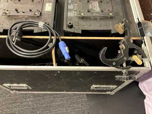Comprend : 12 supports Omega avec détente, 6x adaptateur Schuko vers powerCON, 1x boîtier de vol 6 pièces.