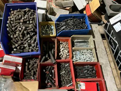 Composé de différentes tailles de boulons ailes/allen, écrous à aile, bacs de support sur et avec 1 palette