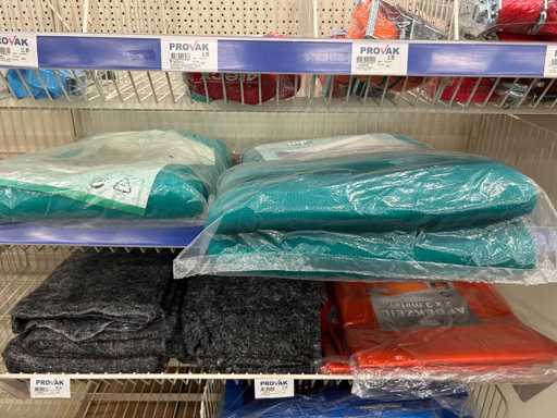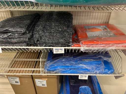 Composée notamment de sangles, de filets finement enfilés, de couvertures de déménagement, de bâches de chantier et de tissus.