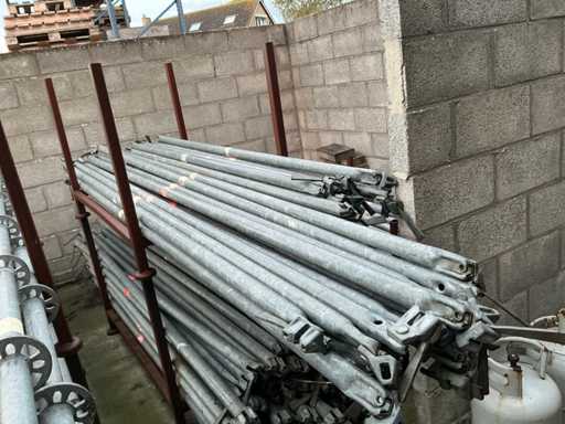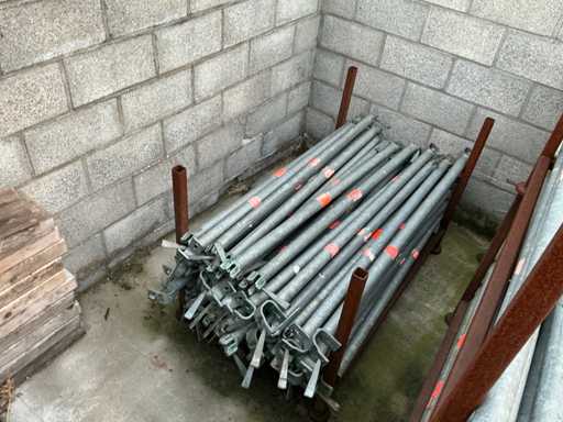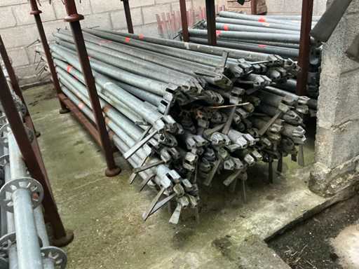 Y compris 25x montant 400cm ; 13x montant 300cm ; 6x montant 200cm ; 12x bretelles longues ; 14x bretelles courtes ; 92x poutres 214cm ; 85x faisceau court 157cm ; 26x pied de commande ; avec 5x support d’empilage