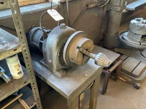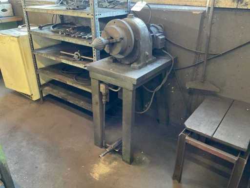 Tours : environ 63 tr/min, moteur environ 1,5 HP, mandrin à 3 mâchoires, diamètre environ 190 mm,