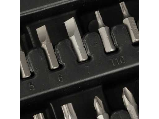 - 3 embouts de tournevis 20-25 mm : T10, T15, T20, T25, T27, T30 et T40