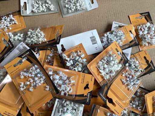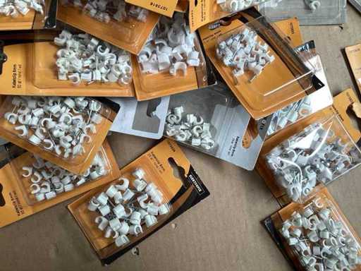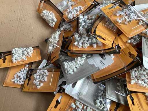 Divers clips de câbles dans des emballages blisés