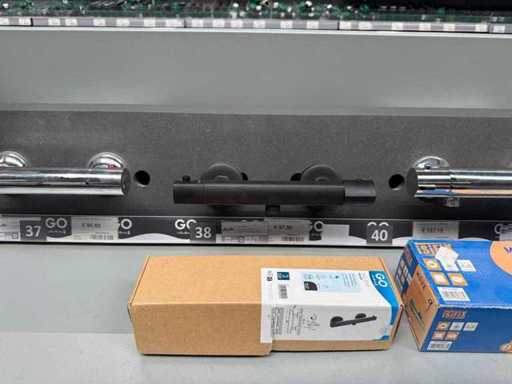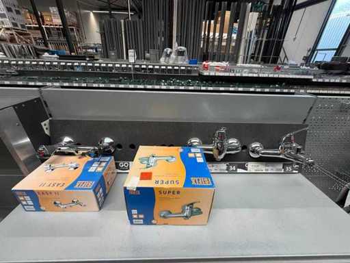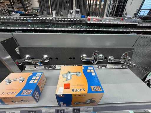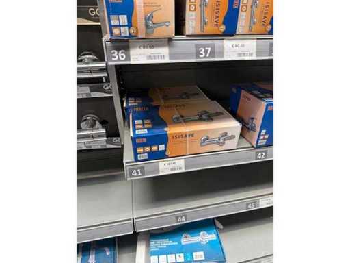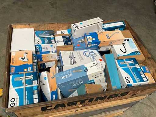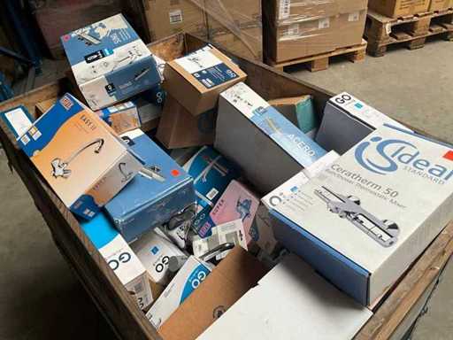 Lot composé de modèles de magasin en partie sans emballage ni accessoires + numéro encore neuf dans la boîte. Partiellement démonté. Sans palette ni bords. Le contenu et le fonctionnement des robinets n’ont pas été vérifiés.