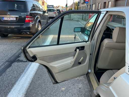 Mercedes-Benz 190 E de 1992 avec 92000 kilomètres au compteur. Carrosserie, moteur et intérieur en bon état. Toit ouvert. Dommages superficiels minimes à la peinture (voir photos). Fixez de petits morceaux de revêtement aux fenêtres (voir photos).