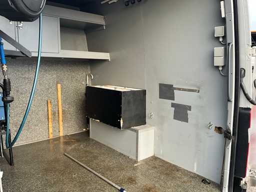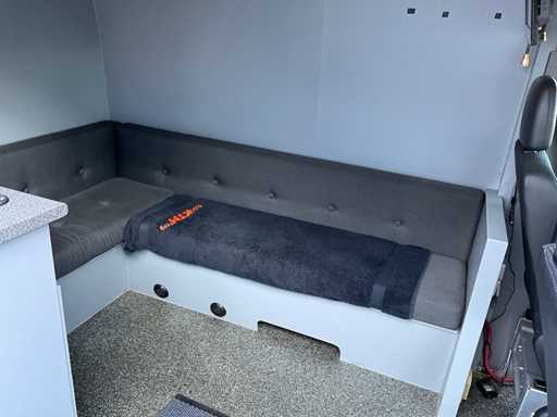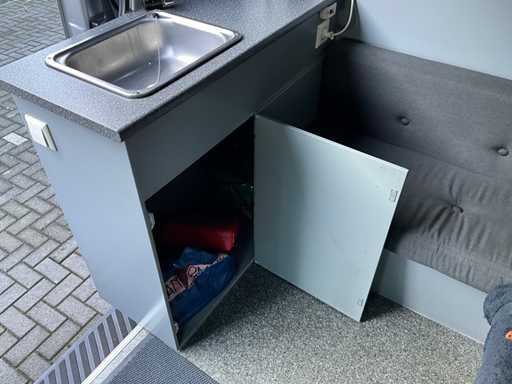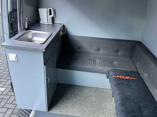 Marqué jusqu’au 29-11-2026, immatriculé en tant que camping-car, le véhicule a été utilisé pour le sport motocross, version longue du bus, partie arrière aménagée en atelier/moteur de stockage, équipé d’un compresseur et d’un générateur, d’un espace salon intégré avec kitchenette, de divers placards de rangement intégrés, d’un auvent fixé, de vitres et rétroviseurs électriques, des commandes au volant, du régulateur de vitesse, de la climatisation, des sièges chauffants pour le conducteur et passager, et le chauffage de stationnement.