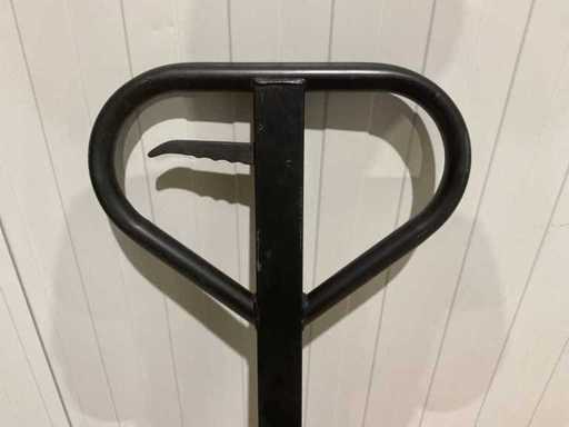 Équipé d’une capacité de levage : 2,500 kg ; Hauteur minimale de fourche : environ 85 mm ; Hauteur maximale de levage : environ 200 mm ; Longueur de la fourche : 1150 mm ; Largeur totale de la fourche : 520 mm ; Largeur par fourche : environ 160 mm ; Non testé pour son fonctionnement