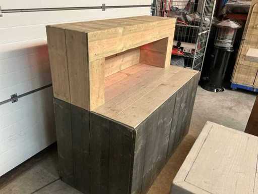 Meuble de bar en bois d’échafaud + Arrière-bar