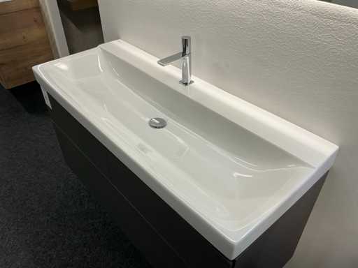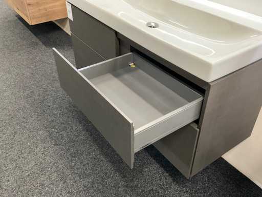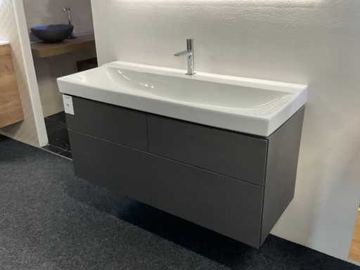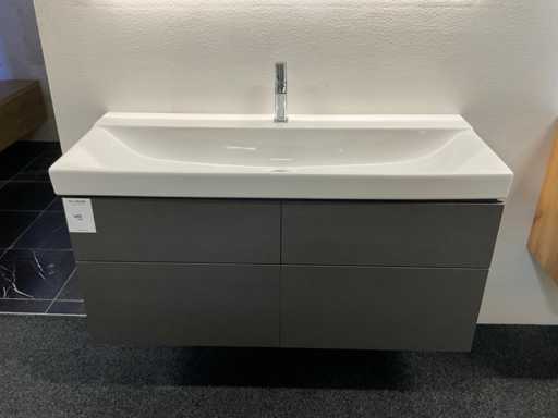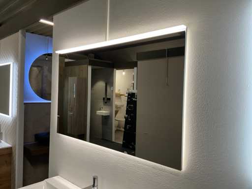 équipé d’une armoire de base avec 4 tiroirs sans poignée ; Lavabo « Geberit » ; Mitigeur monocommande « Tres » ; miroir avec éclairage LED délibéré ; Taille environ 120x70 cm