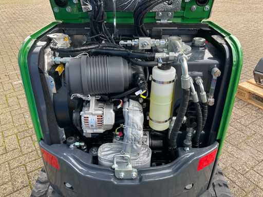 équipé de : 4x sable d’excavatrice (godet à gravats 80-40-23-40), attelage rapide hydraulique CW00, 1x connexion hydraulique à double action à la perche, raccord de retour libre, éclairage, barre de sécurité rabattante, bâte oscillante en 2 parties, chenilles hydrauliques réglables en largeur (75-90 cm), 2 vitesses de course