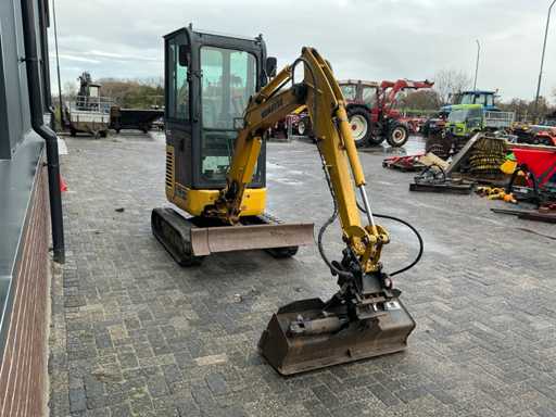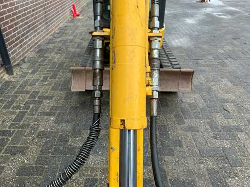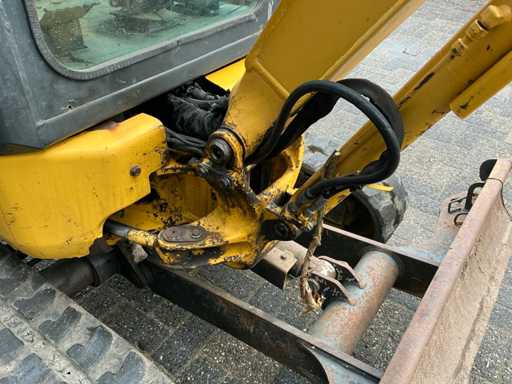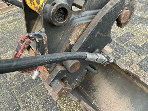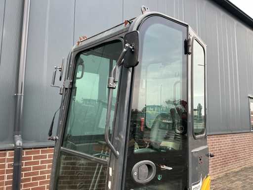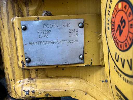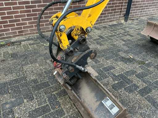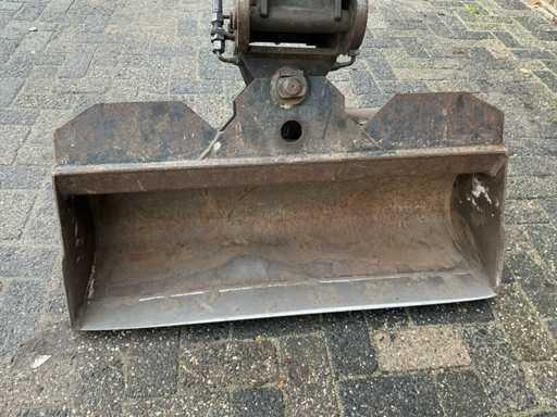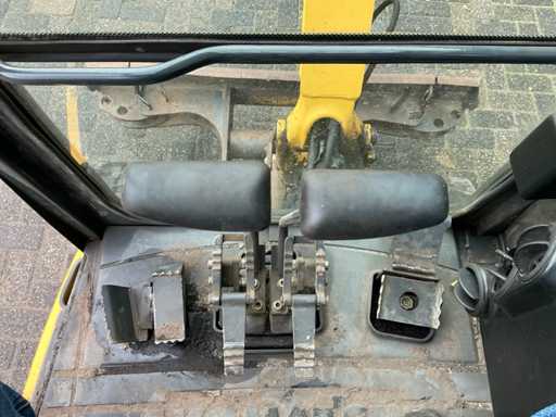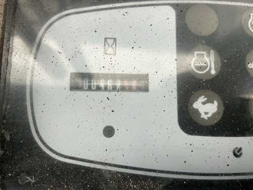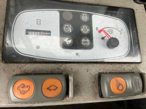 Équipé de : godet basculant, attelage rapide, lame coulissante, cabine, chenilles