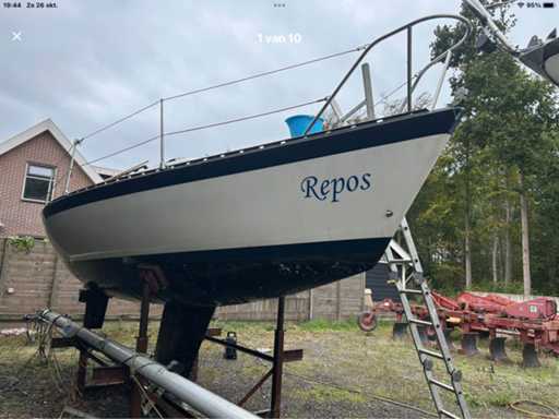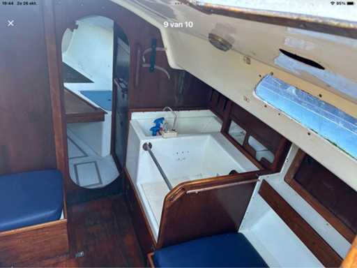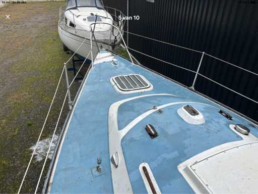 sans moteur mais l’arbre d’hélice est toujours présent, y compris le mât / foc sur enrouleur et les voiles, sans chevalet, veuillez noter qu’il n’y a pas de grue ou de chariot élévateur présent à cet endroit, l’acheteur doit s’en occuper lui-même, pour plus d’informations mail à info@handelwandel.com, les dimensions de longueur et de largeur sont approximatives, tirant d’eau probablement environ 120 cm, visite et collecte uniquement sur rendez-vous veuillez envoyer un courrier à info@handelwandel.com