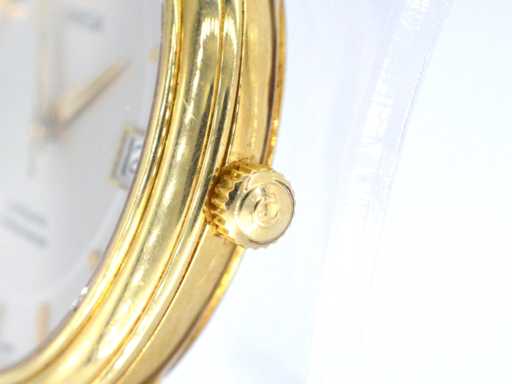 34 mm (Marque) : Omega ; Modèle : De Ville Prestige ; Référence : 46003102 ; Année : 2002 ; Cadran : Gris ; Horloge (type) : Automatique ; Diamètre du boîtier : 34 mm ; Lunette : Or ; Verre : Cristal de saphir ; Accessoires : boîte originale et papiers ; Joyau : montre ; Matériau : or ; Condition : Très agréable ; Note : La qualité a été prise du rapport correspondant à l’article ;