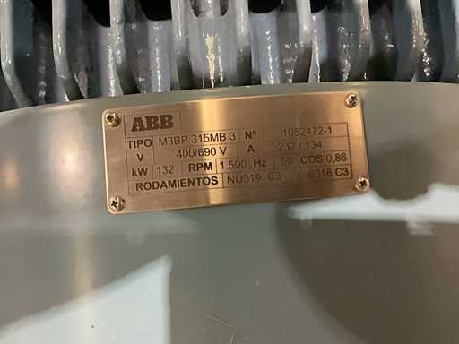 Moteur électrique ABB 132KW 1500RPM 400/690V B3 T315M