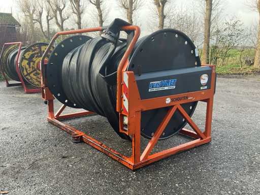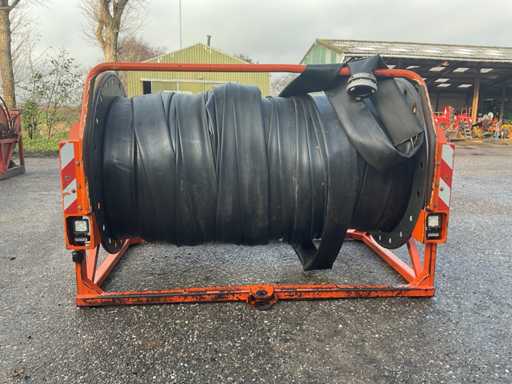 Environ 650 MTR de tuyau de transport, 6" pouces, raccord Accord, entraînement hydraulique, barre de remorquage, feux de travail