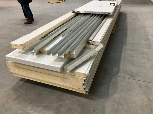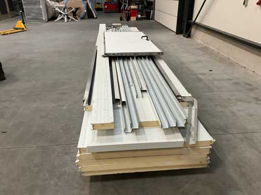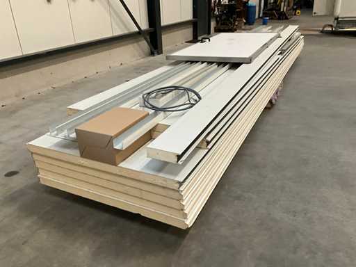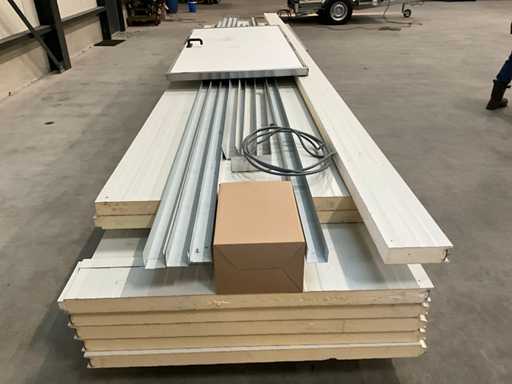 5X panneau sandwich 6000x1150 mm, 1x mur avec porte, épaisseur de panneau 60 mm, divers profils et éclairage de secours inclus