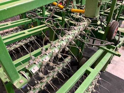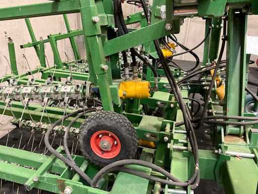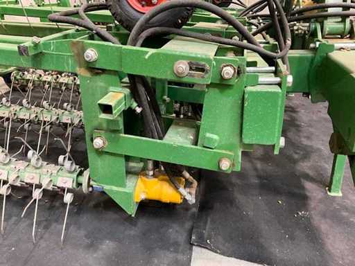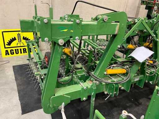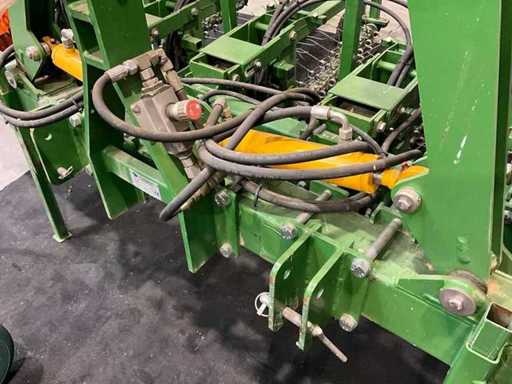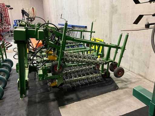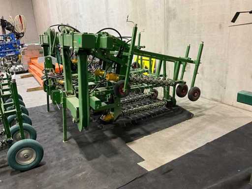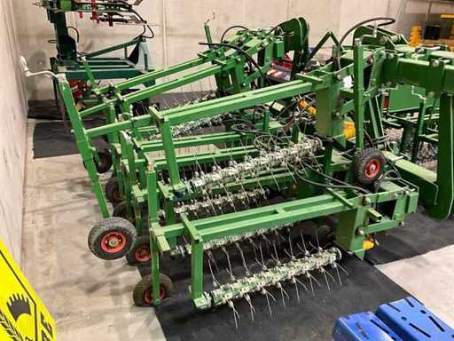 Les arbres équipés de dents à ressort sont mis en rotation par un moteur à huile et nettoyés dans la rangée de culture ;