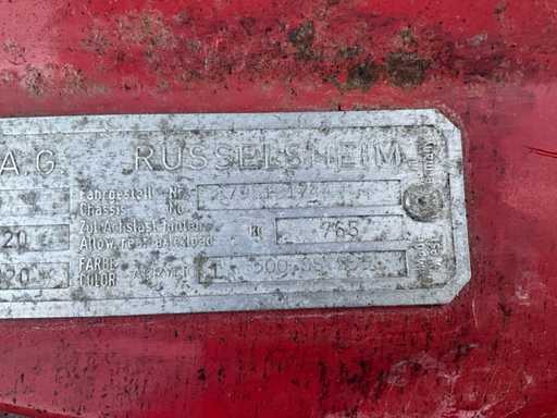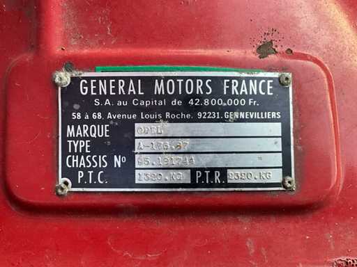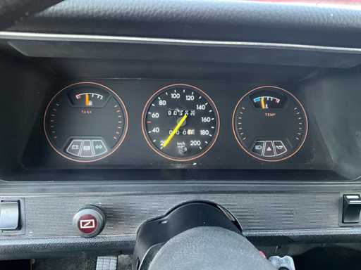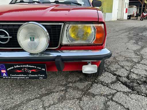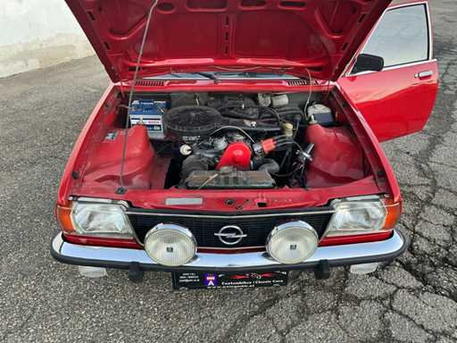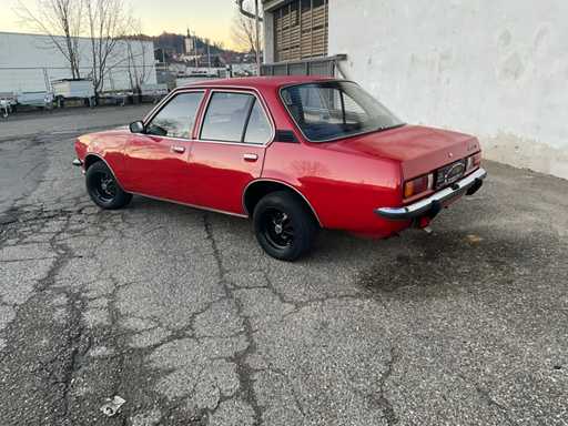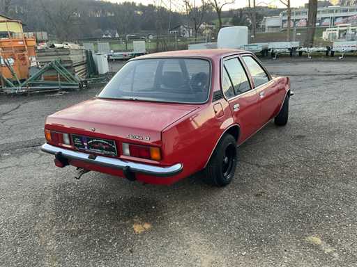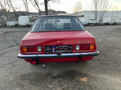 Opel Ascona, moteur 1,3 litre avec 44 kW, boîte manuelle, intérieur très bien entretenu et d’origine, la voiture tourne et est régulièrement déplacée ;