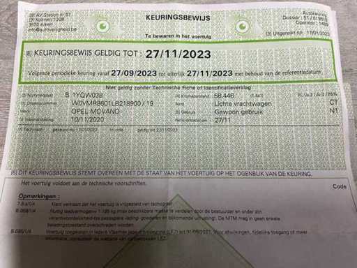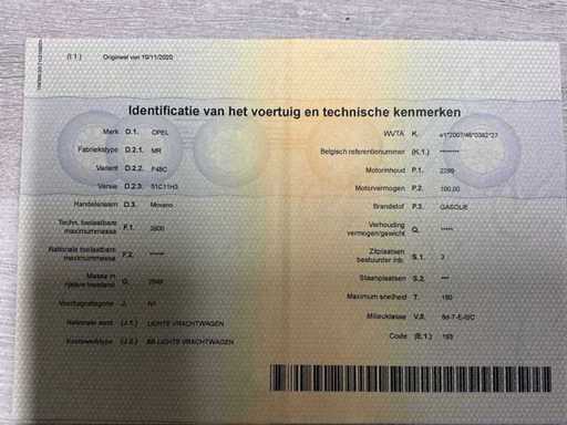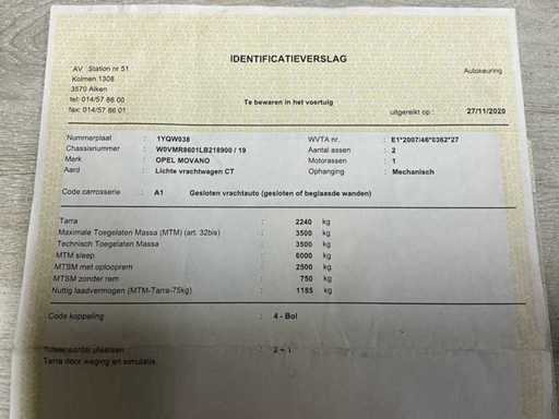 Opel Movano 2020 - 3 pers - climatisation - barre de remorquage