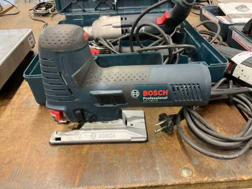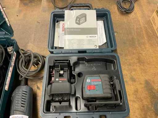 Divers outils Bosch, dont perceuse, meuleuse d’angle, scie sautée, doublure laser et disques de meulage