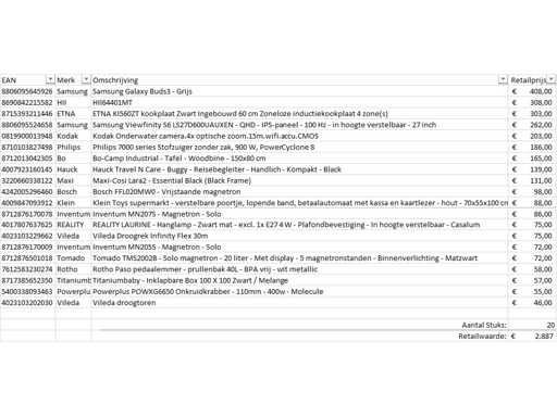Il s’agit d’un lot de produits retournés de la marque A provenant d’un grand détaillant en ligne. Le lot se compose de différentes catégories de produits. Nombre de pièces : 20. Valeur de détail : 2887 €,- Non contrôlé : exploitation inconnue (mélange de
