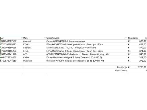 Il s’agit d’un lot de produits retournés de la marque A provenant d’un grand détaillant en ligne. Le lot se compose de différentes catégories de produits. Nombre de pièces : 7. Valeur commerciale : 2705 €, - Non contrôlé : exploitation inconnue (mélange de