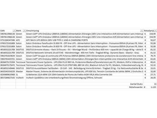 Il s’agit d’un lot d’alimentations d’urgence provenant d’un grand détaillant en ligne. Le groupe se compose de différents types d’installations électriques d’urgence, notamment des systèmes de secours, des centrales électriques, etc. Nombre de pièces : 15. Valeur de vente au détail : 1125 €, - Non contrôlé : exploitation inconnue (mélange de