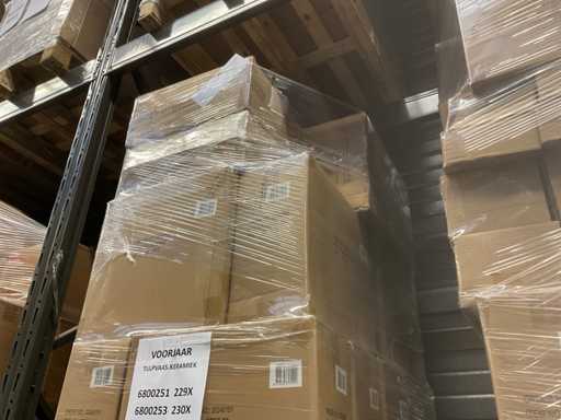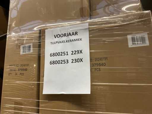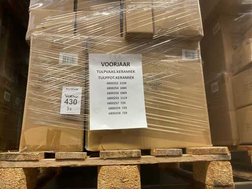 3 palettes d’articles à ressorts. Y compris les vases en céramique, les assiettes, etc.