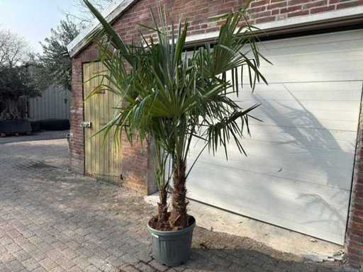 Palmier éventail chinois - Trachycarpus fortunei - Double tronc - Hauteur environ 250 cm