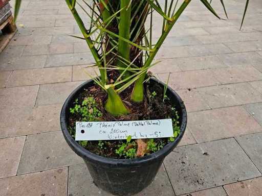 Apportez une ambiance de vacances méditerranéennes directement à votre jardin ou à votre terrasse ! Ce magnifique palmier phénix, également appelé palmier dattier des Canaries, impressionne par ses larges feuilles vertes luxuriantes et sa croissance vigoureuse. Avec une taille impressionnante d’environ Mesurant 200 cm, elle attire l’œil idéalement pour les espaces extérieurs spacieux ou les vérandas lumineuses. La plante est robuste et, selon l’étiquette, brièvement tolérante au gel jusqu’à -5°