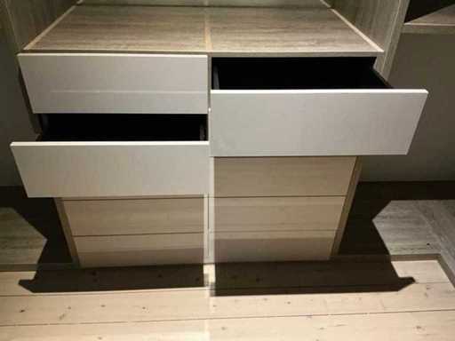 Avec une disposition totale d’environ 335 x 325 x 243 cm, équipée de 18 tiroirs et 4 portes vitrées, le client doit se démonter de l’environnement de manière correcte.