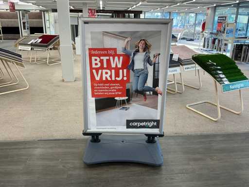 Le panneau sur le trottoir mesure 95x60x150 cm