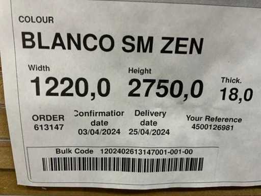 Panneau zénith, sm 2750x1220x18mm (19x)