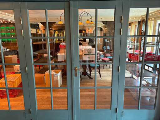 Mur avec vitres de porte avec charnières et serrures