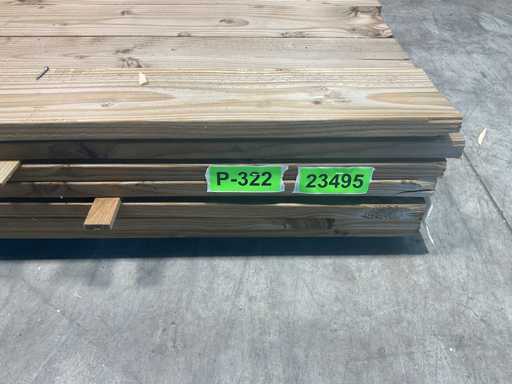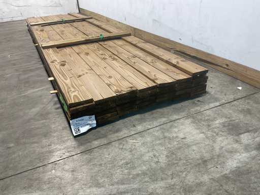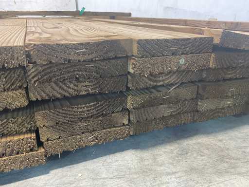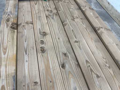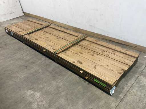 Partie de pont profilée simple face Douglas d’une taille de 400 x 14,5 x 2,5 cm chacune. Les parties du pont sont en vert imprégné.