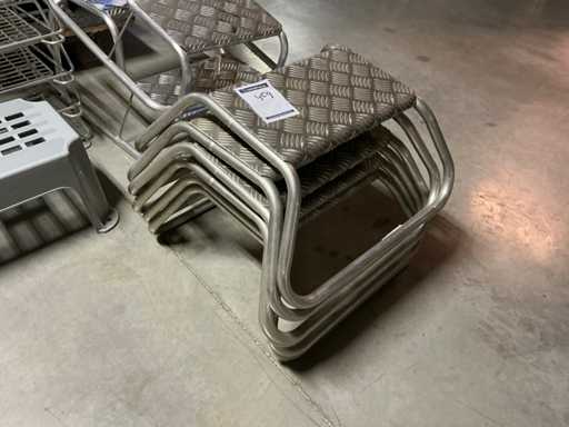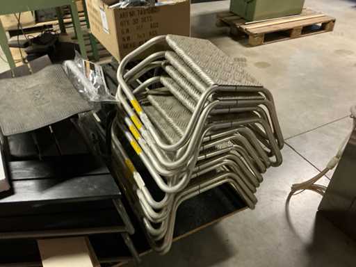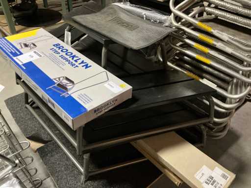 Plastique et aluminium, avec supports latéraux et pieds réglables
