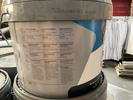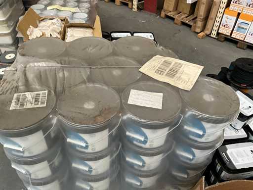 Environ 41 seaux de 10 litres ; pas vérifié pour les tailles, les chiffres et la couleur ; Différents types, couleurs et tailles de peinture ;