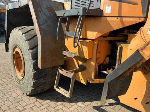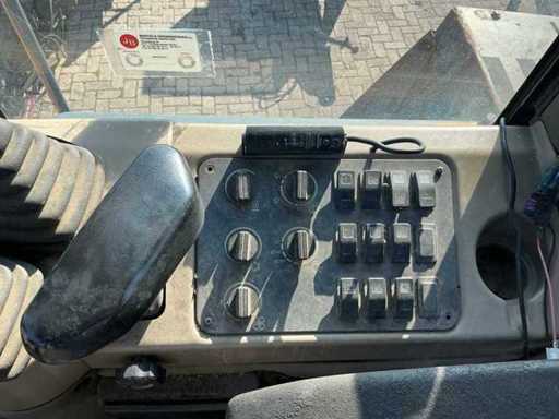 Équipé, entre autres : d’un système de lubrification automatique, d’une fonction hydraulique sur bôme, d’un attelage rapide hydraulique arrière, de feux de travail à LED, de la taille des pneus 26.5R25. Inclut une roue de secours avec jante