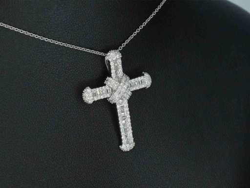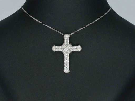 Pendentif en croix en or blanc avec diamants