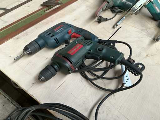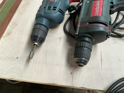 Dont 1x Bosch GBM10RE et 1x Metabo BE530, tous deux équipés d’un mandrin à serrage rapide
