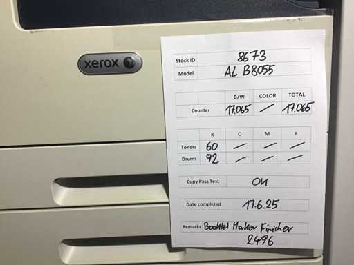 Photocopieur multifonction A3/SRA3 noir et blanc, compteur affichant SEULEMENT 17 065 tirages au total, statut de la copie OK, vérifié par un technicien légitime ! PostScript 3 est activé ! Veuillez consulter les photos jointes pour les niveaux restants de toner et de batterie en pourcentage ! L’appareil inclut le Booklet Maker Finisher !