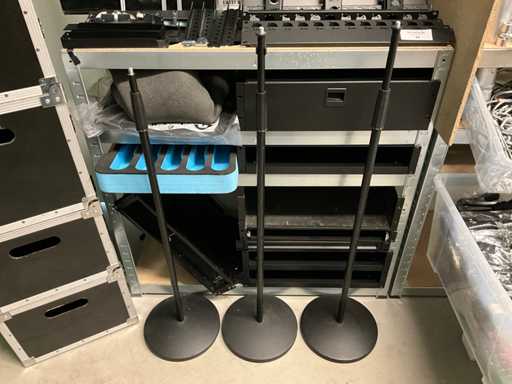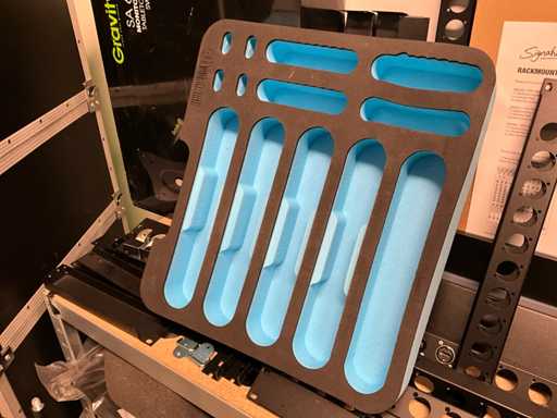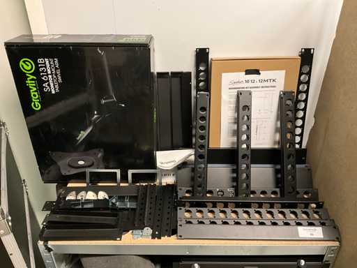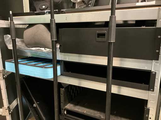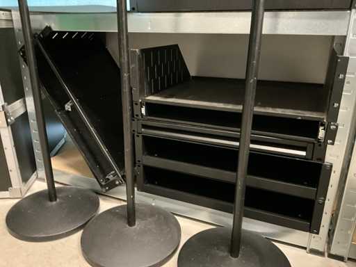 Y compris 9 tiroirs et étagères ; 21 plaques aveugles et plaques de châssis ; montage en rack « signature » ; support de moniteur ; incrustation de microphone ; 3 pieds de micro et 5 caisses