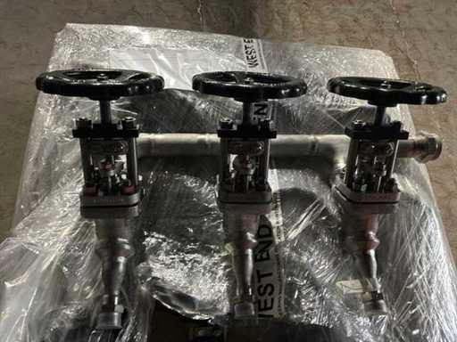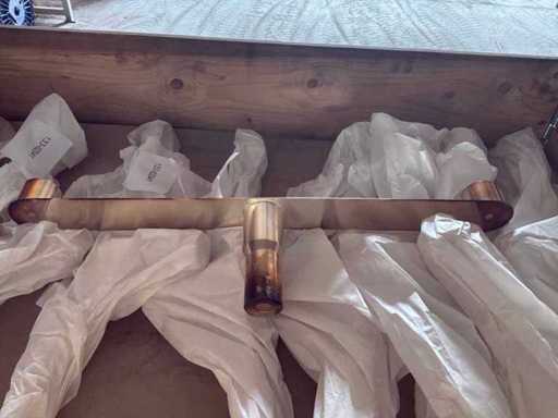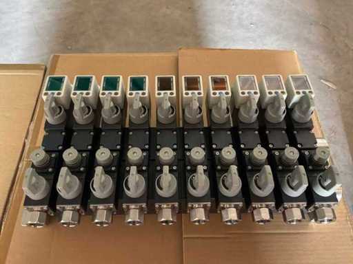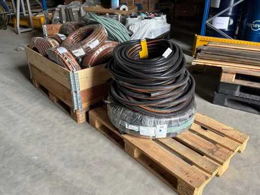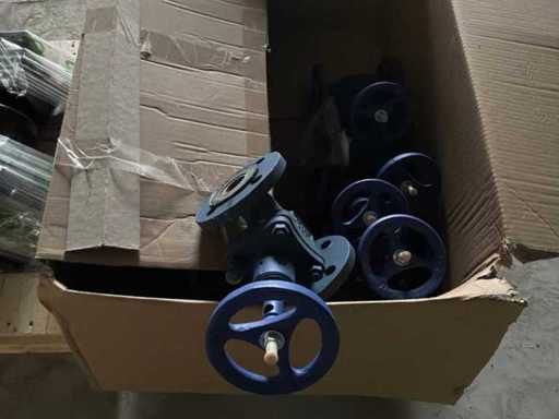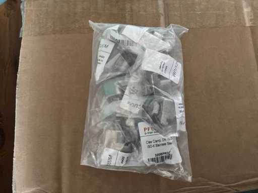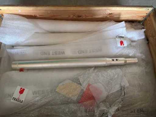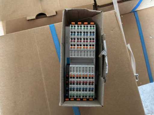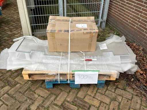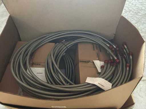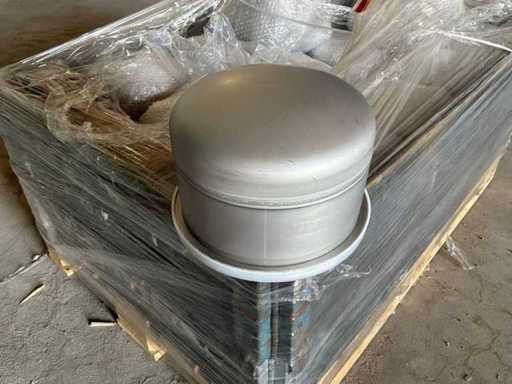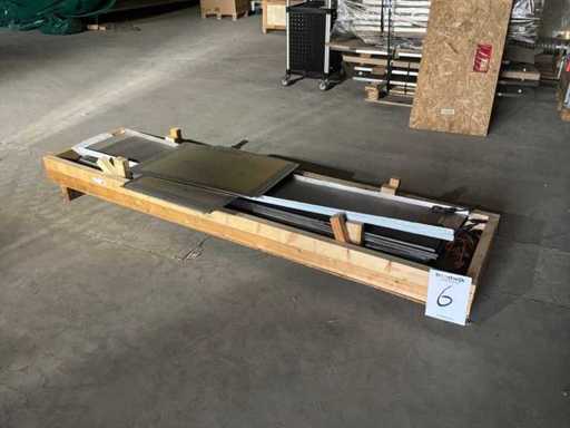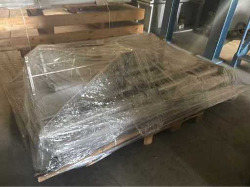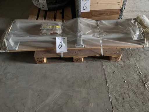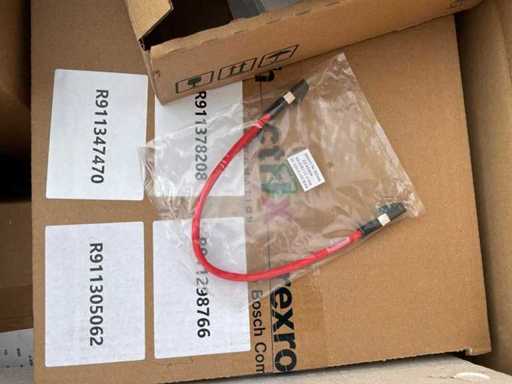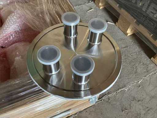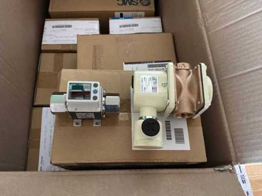 Diverses pièces de machine appartenant au lot n° 5, comprenant notamment : pièces en acier inoxydable, divers composants électriques, soupapes de pression, pinces, câbles, variateurs de courant alternatif, débitmètre, tuyaux en aluminium, divers tuyaux de dépôt, 2x rack de stockage mobile.