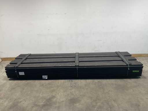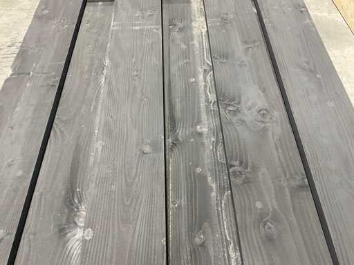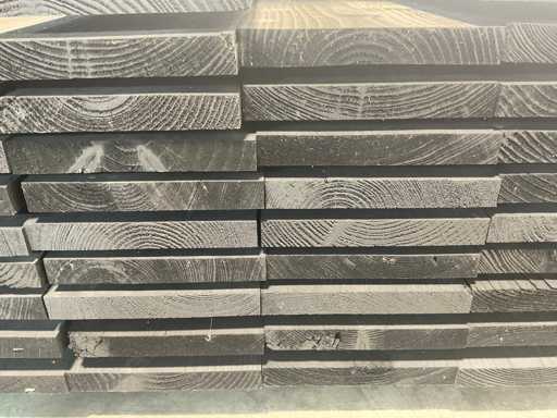 Des planches d’épicéa aplanées noires imprégnées, d’une taille de 400 x 19,5 x 2,5 cm chacune.